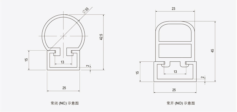 一个完整的安全触边开关包括一个铝轨和安全接触带,安全触边的特殊形状(橡胶侧面)可保护安全接触带不受破坏,并准许安全触边开关受冲击的角度超过90度。FES-L型安全触边开关处在工作状态时,当与人接触或与物体接触时,发出信号让系统停机其弹性材料及吸收冲击力的特性有力的减缓了对人或对物体的碰撞,延长产品使用寿命。